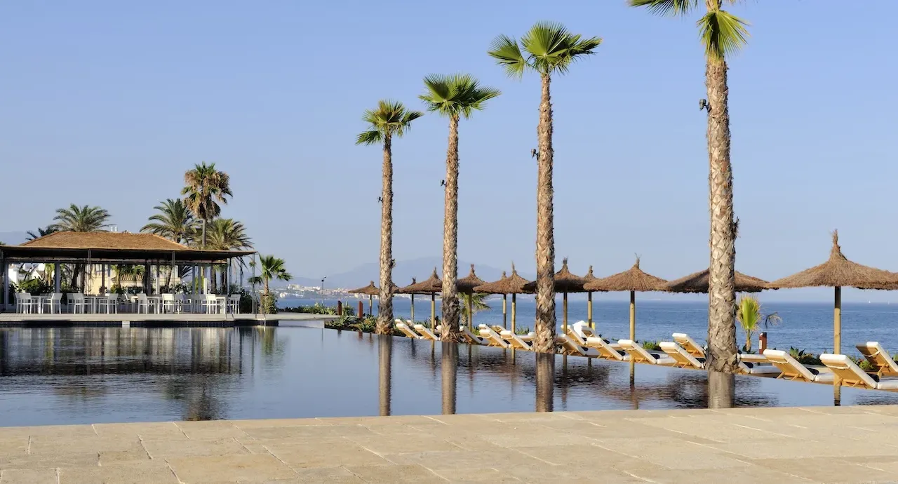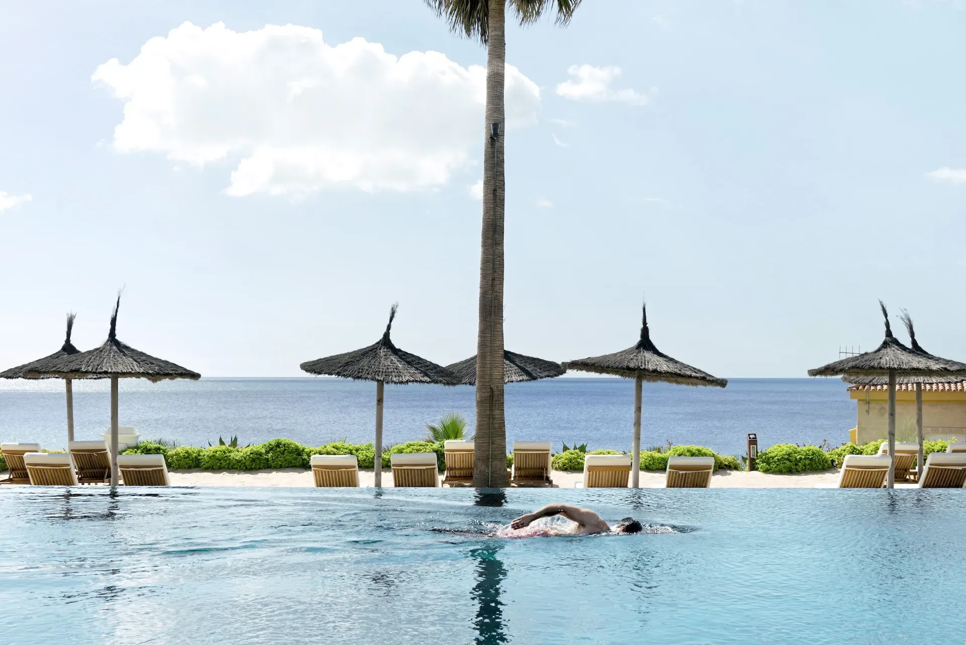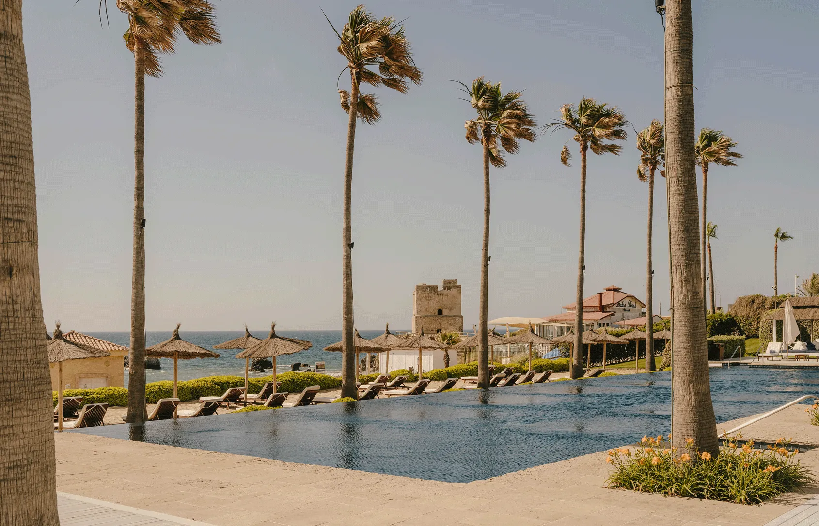 Only a short distance from the hotel, our exclusive Beach Club is a haven of coastal elegance and enjoyment. Spanning 6,000 m² (64,583 ft2), it features a stunning 35-meter (115 foot) infinity pool surrounded by Balinese beds and sun loungers. Set against lush gardens and with direct access to the beach, it’s the perfect place to unwind while enjoying the sun and sights.