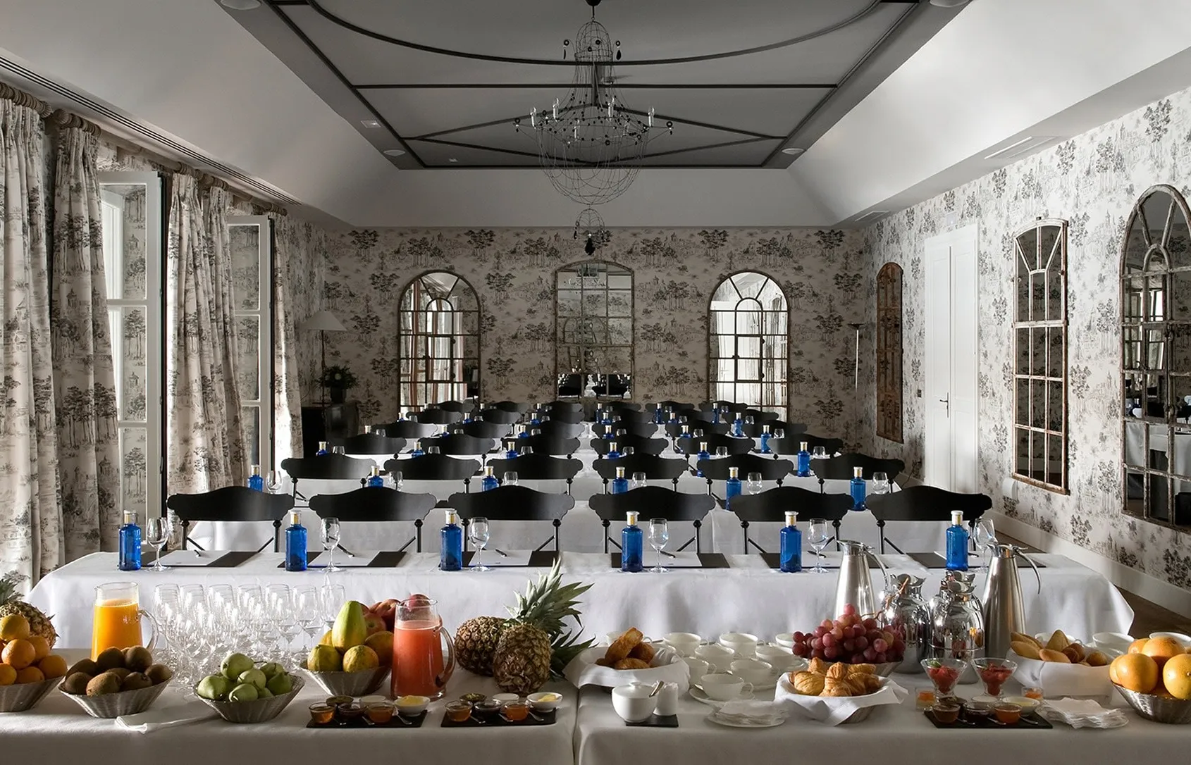 Crafted with special moments in mind, Finca Cortesin offers over 440 m² (4,736 ft²) of dedicated event space, distributed across three versatile rooms designed to accommodate gatherings of all kinds. The Ballroom (262 m² / 2820 ft²) provides a majestic setting for up to 120 guests, ideal for meetings and private events. The Cloister Room (120 m² / 1291,67 ft²) combines classic sophistication with natural light, and the Board Room (35 m² / 377 ft²) offers an intimate environment for private meetings or smaller events. Each space opens out onto serene terraces and gardens, creating a seamless connection between elegant interiors and the striking Andalusian landscape.