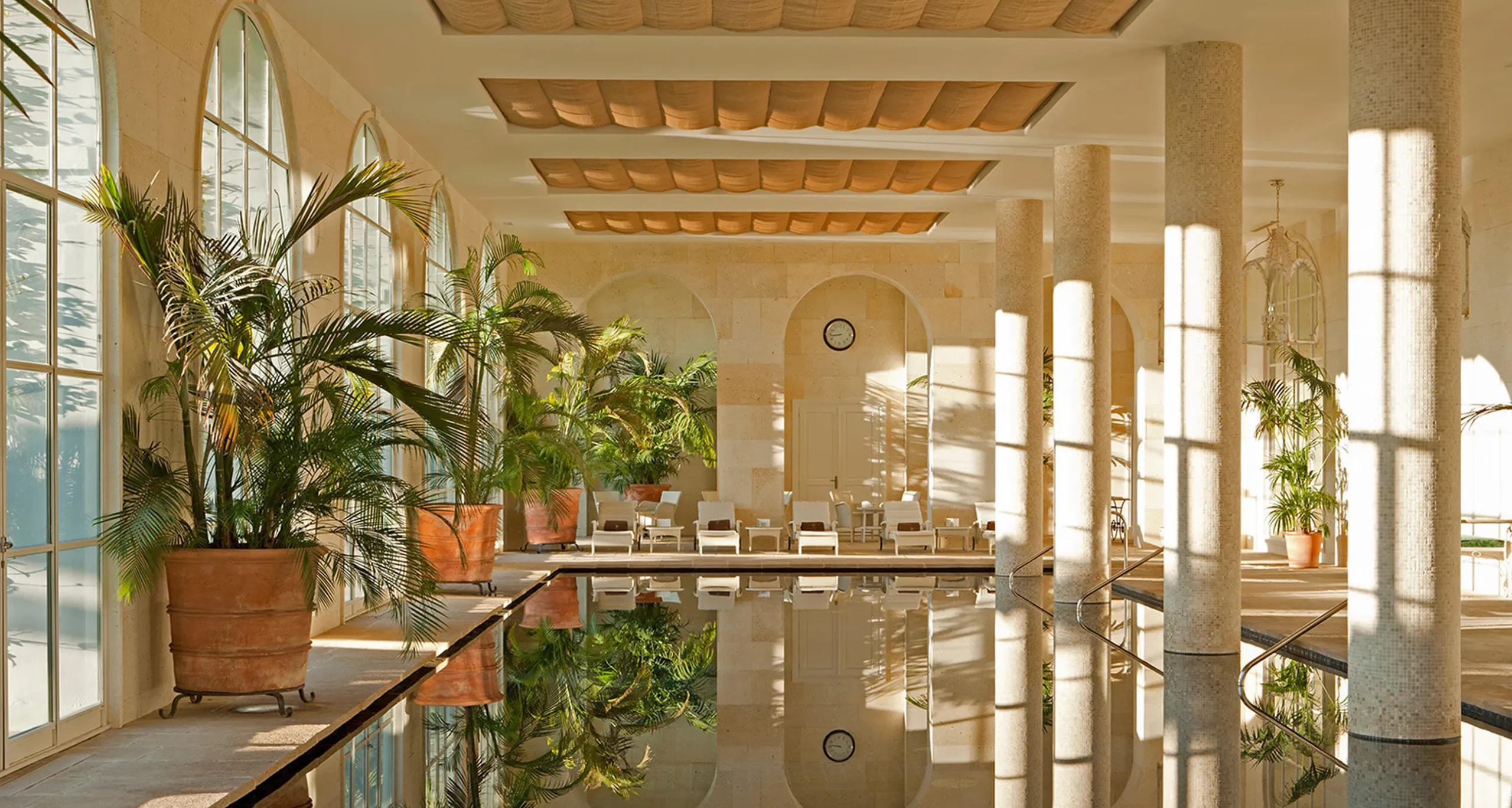 Spanning an impressive 2,200 m2, Finca Cortesin’s spa features individual areas for facial and body treatments, with an extensive menu of massages, a fitness center, and thermal baths. The spa also features a 25 m2 (269 ft2) indoor heated salt-water swimming pool and personal trainers available on request, putting a world of wellness at your fingertips.